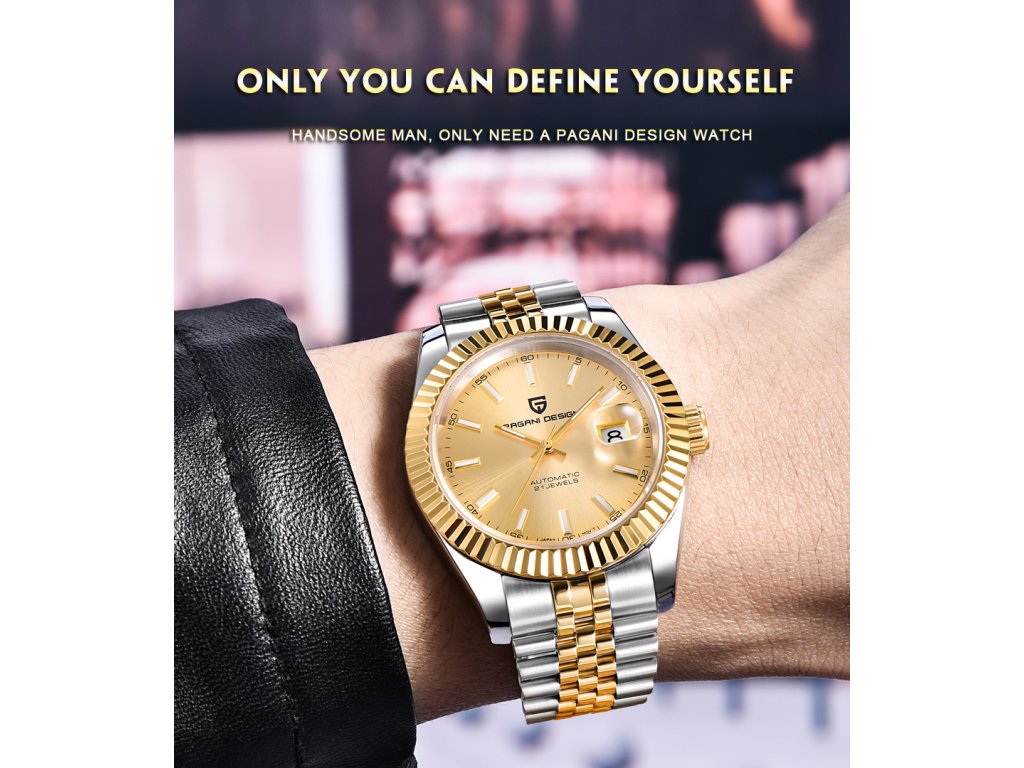 Emelje megjelenését egy új szintre a Pagani Design lenyűgöző kéttónusú automata órájával. Ez az időmérő nem csupán egy eszköz az idő mérésére, hanem egy határozott stílusnyilatkozat. A nemesacél hűvös ragyogása és az arany eleganciája olyan harmóniát alkot, amely a tárgyalóteremben és egy elegáns vacsorán is magabiztosságot sugároz.