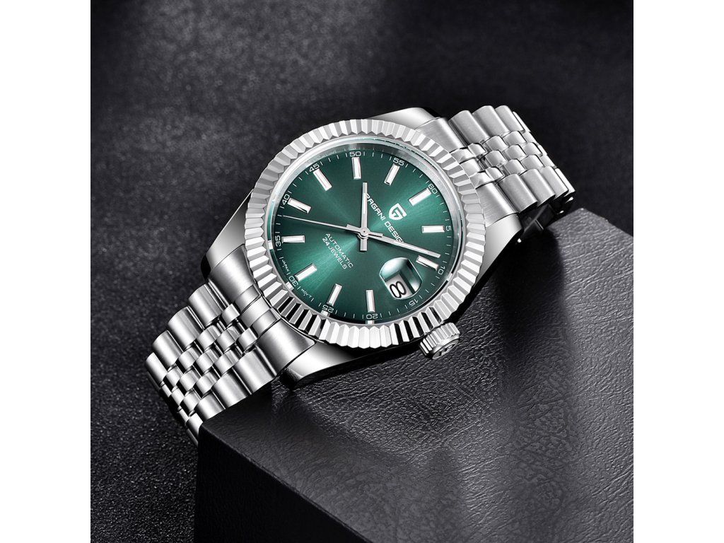 A karakteres megjelenés és a megbízható automata technológia tökéletes kombinációja. A Pagani Design Date Green Automatic karóra elegáns zöld számlapjával és prémium anyaghasználatával azonnal kitűnik a tömegből – ideális választás azok számára, akik stílusos és tartós időmérőt keresnek.
